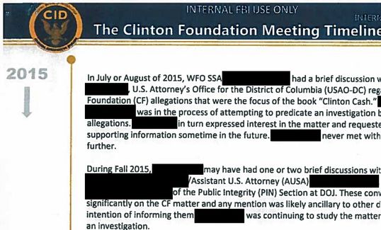 - Feb. 2016 – DOJ signals to FBI that it “would not be supportive” of investigating the Clinton Foundation.