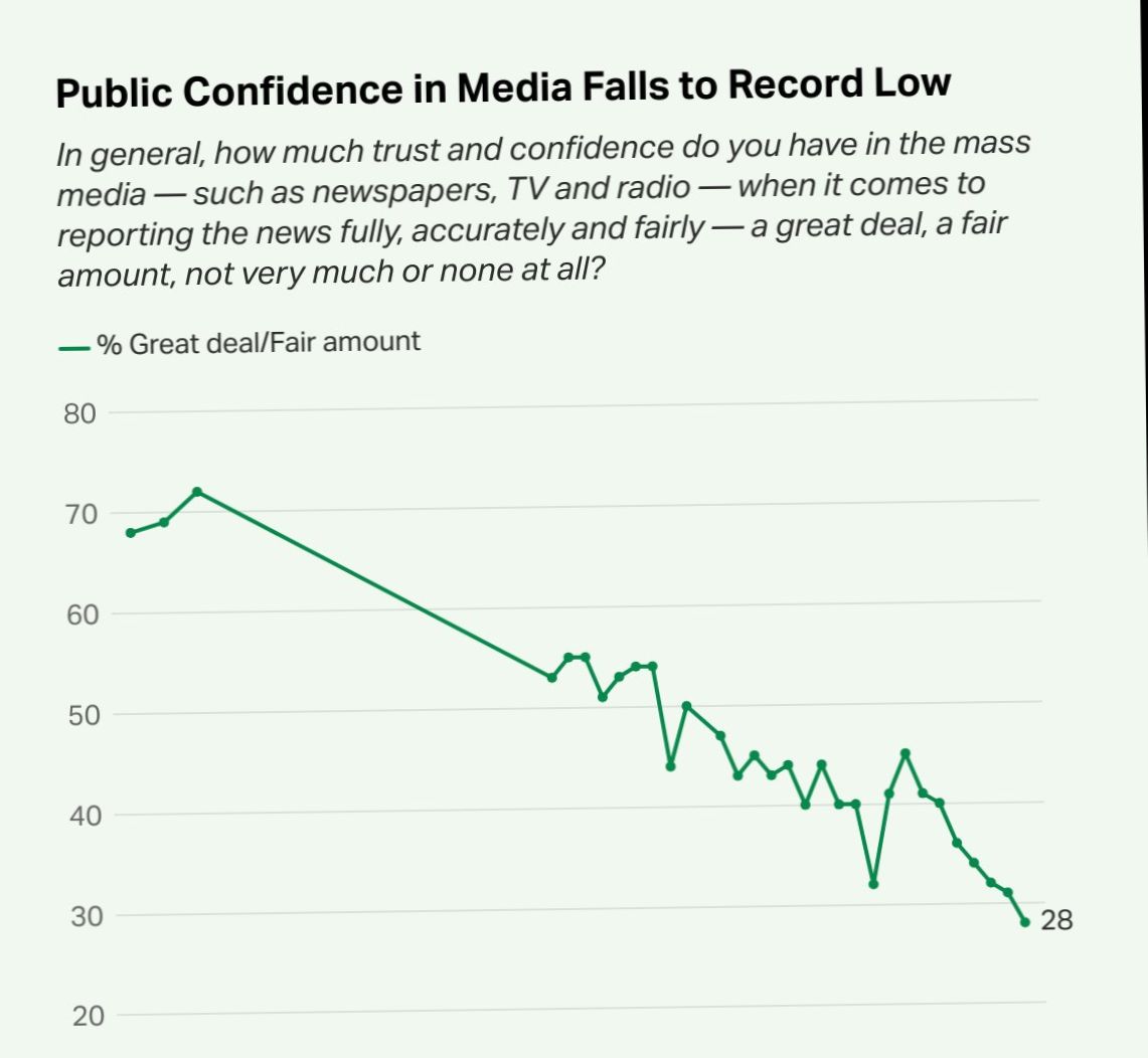 October 2, 2025 – Gallup Poll: Trust in the news media lower than ever before among all Americans